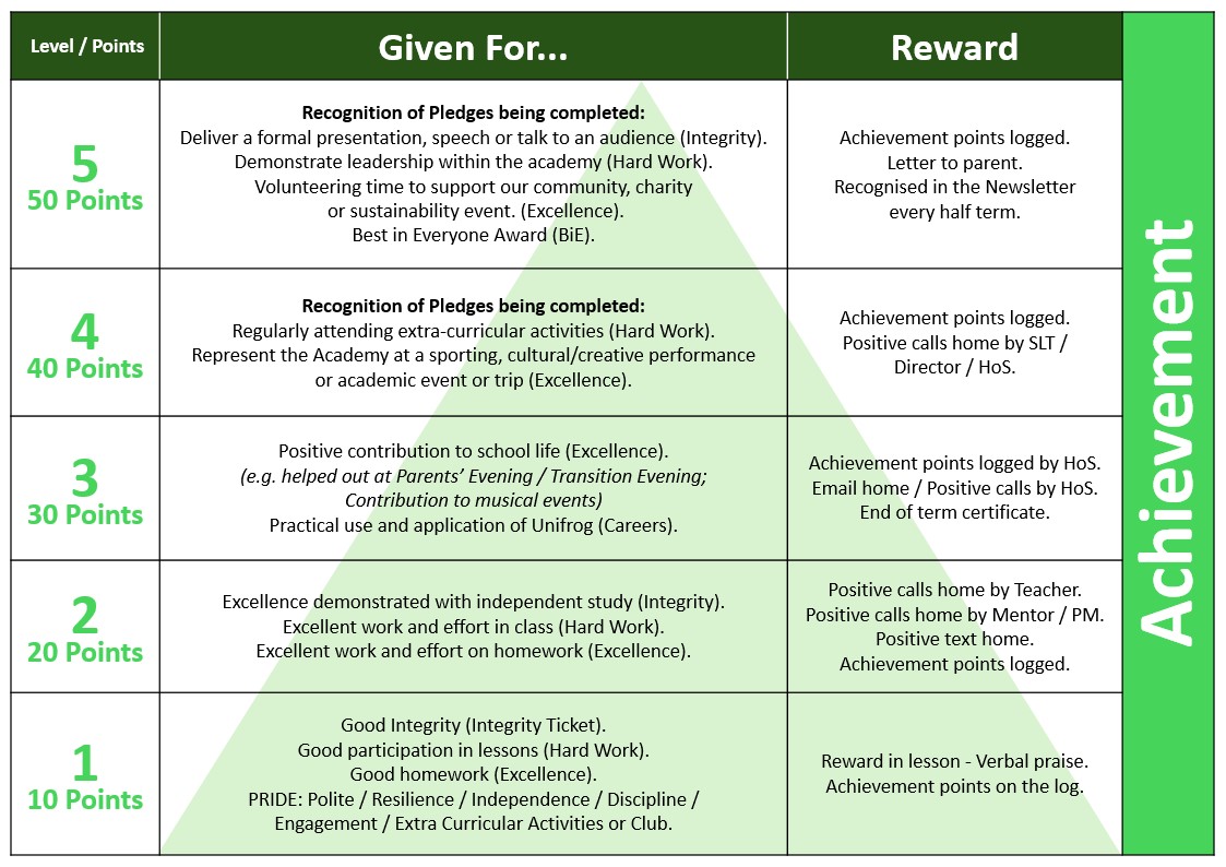 Weekly achievement points issued by teachers, based on hard work, excellence, integrity, and continued effort can be seen on firefly and are automatically emailed out to parents. This enables you to see which teacher rewarded your child and what the achievement was for. These achievements are for a selected few and worth 20 points each. In order to receive these your child must either demonstrate;