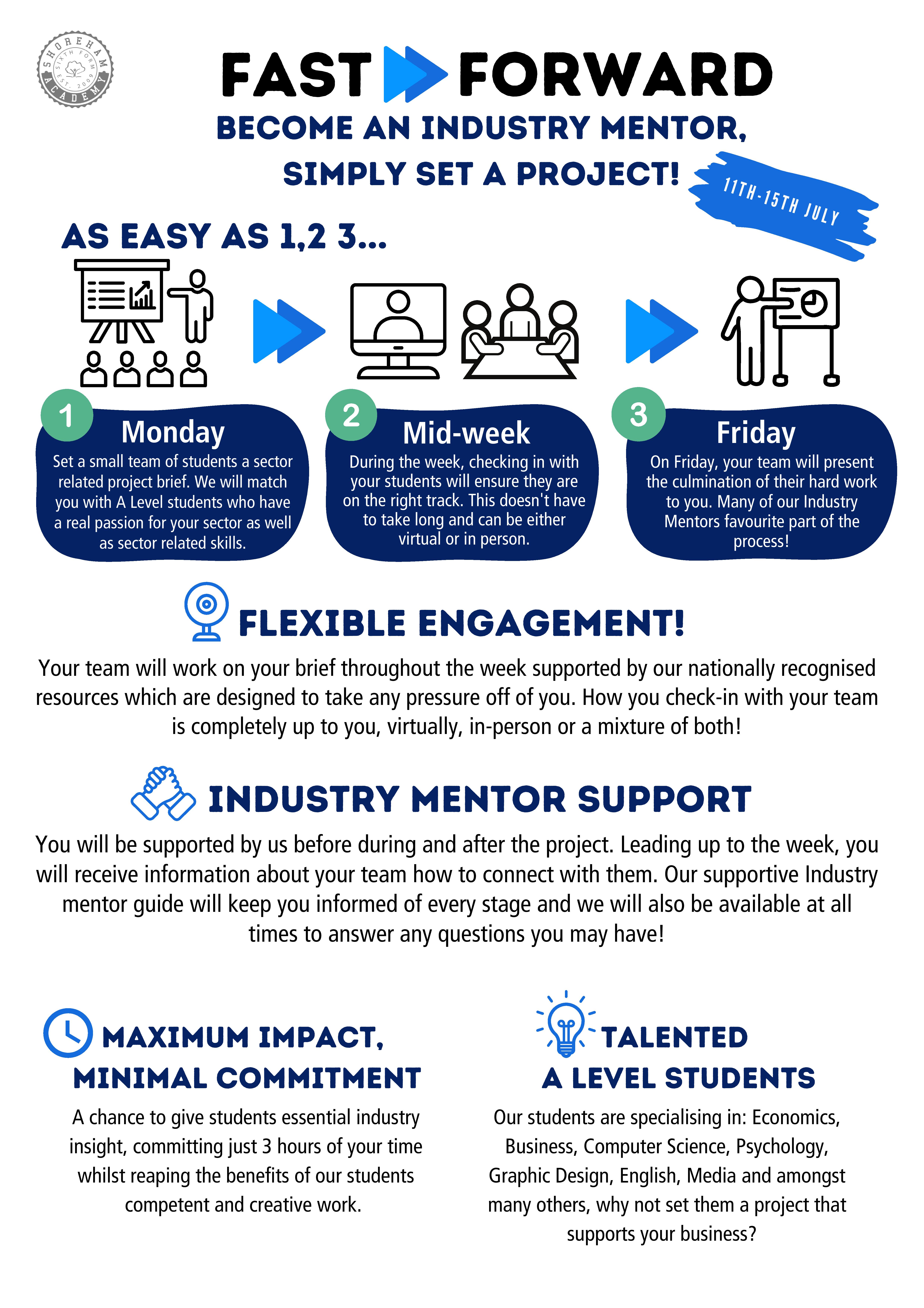 We are proud to deliver a robust and comprehensive Work Experience programme. In 2025 we are offering Year 12 students the opportunity to apply for one of many project-based placements across 36 different sectors. Our expert Industry Mentors will support students to develop their sector related skills and students will take part in a full appraisal process at the end of the week.